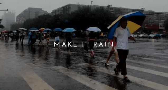 The usual practice of making rain is to use aircraft or rockets to “seed” clouds with catalysts such as dry ice to induce or increase rainfall to relieve drought.