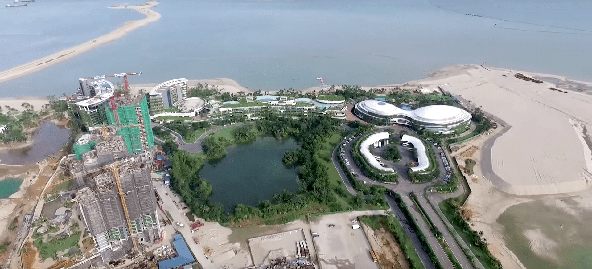 When Forest City is complete by 2040, it will have office buildings, parks, a transit network, hotels, restaurants, shops, schools, and 250,000 housing units. It is expected to be the largest overseas project by a Chinese developer.